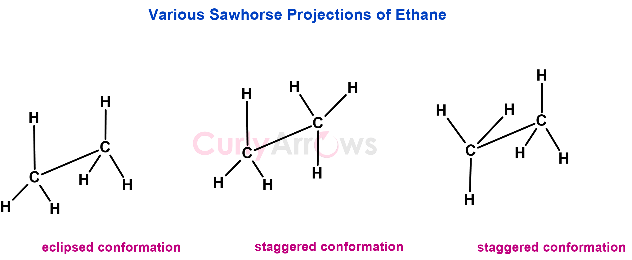 Now, chemistry is more complex than the apparent world we live in. Organic molecules containing single bonds undergo bond rotations. So, the Y end of the sawhorse projection, due to the bond rotation, may sometimes be shown as inverted. In reality, they represent the eclipsed and staggered conformations.
