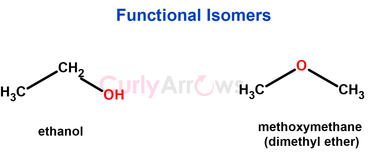 3. Isomers with the same molecular formula but different functional groups are functional isomers.