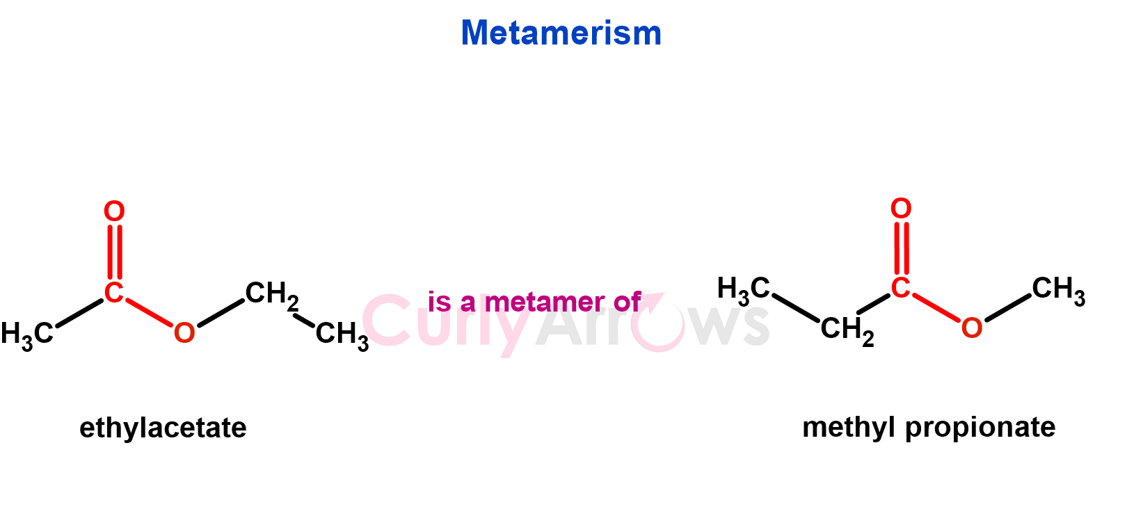 4. Compounds with the same molecular formula but different carbon atoms on either side of the functional groups are metamers.