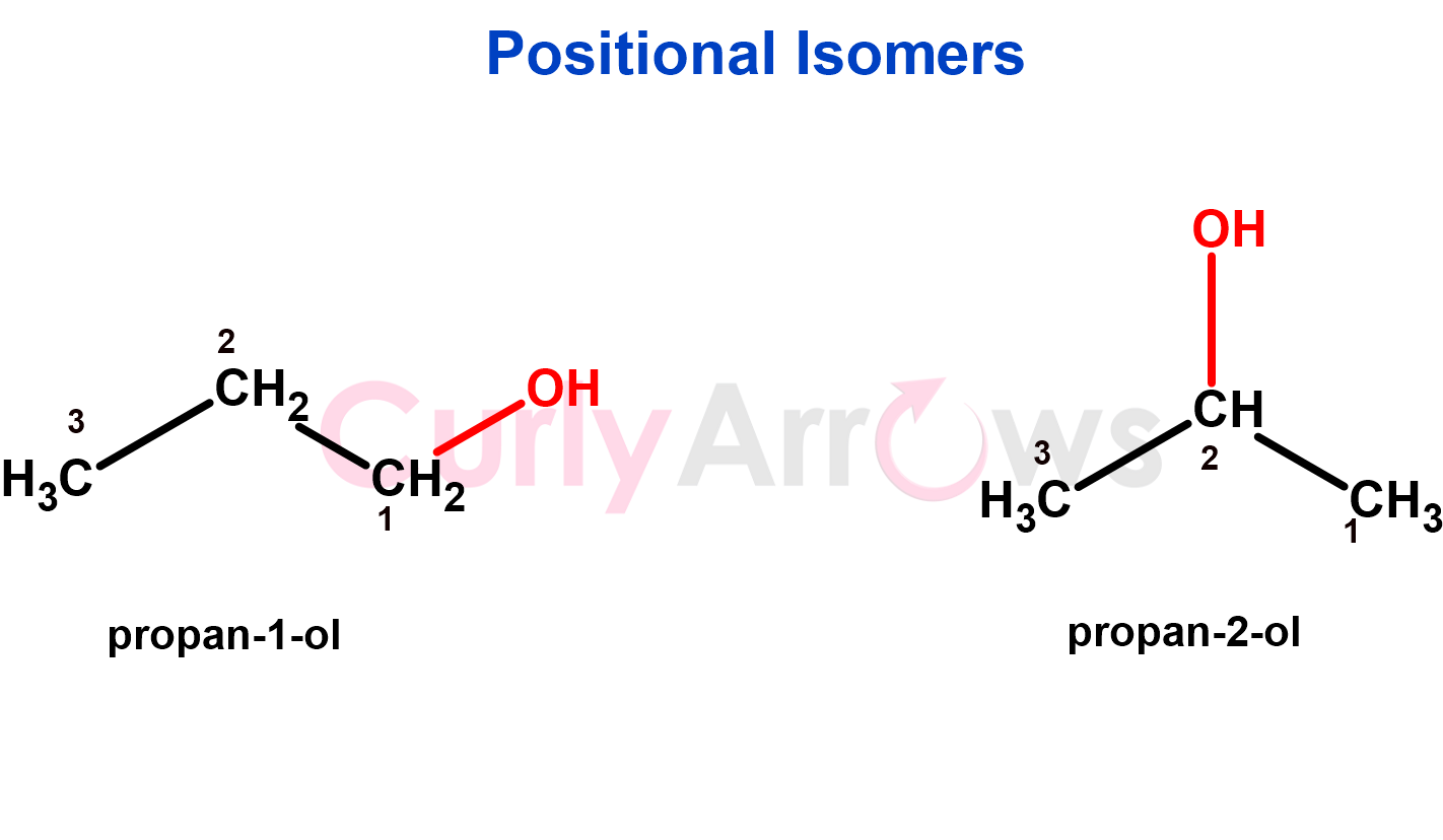 2. If the structural variation is in the position of the functional groups or multiple bonds, the isomers are positional isomers.